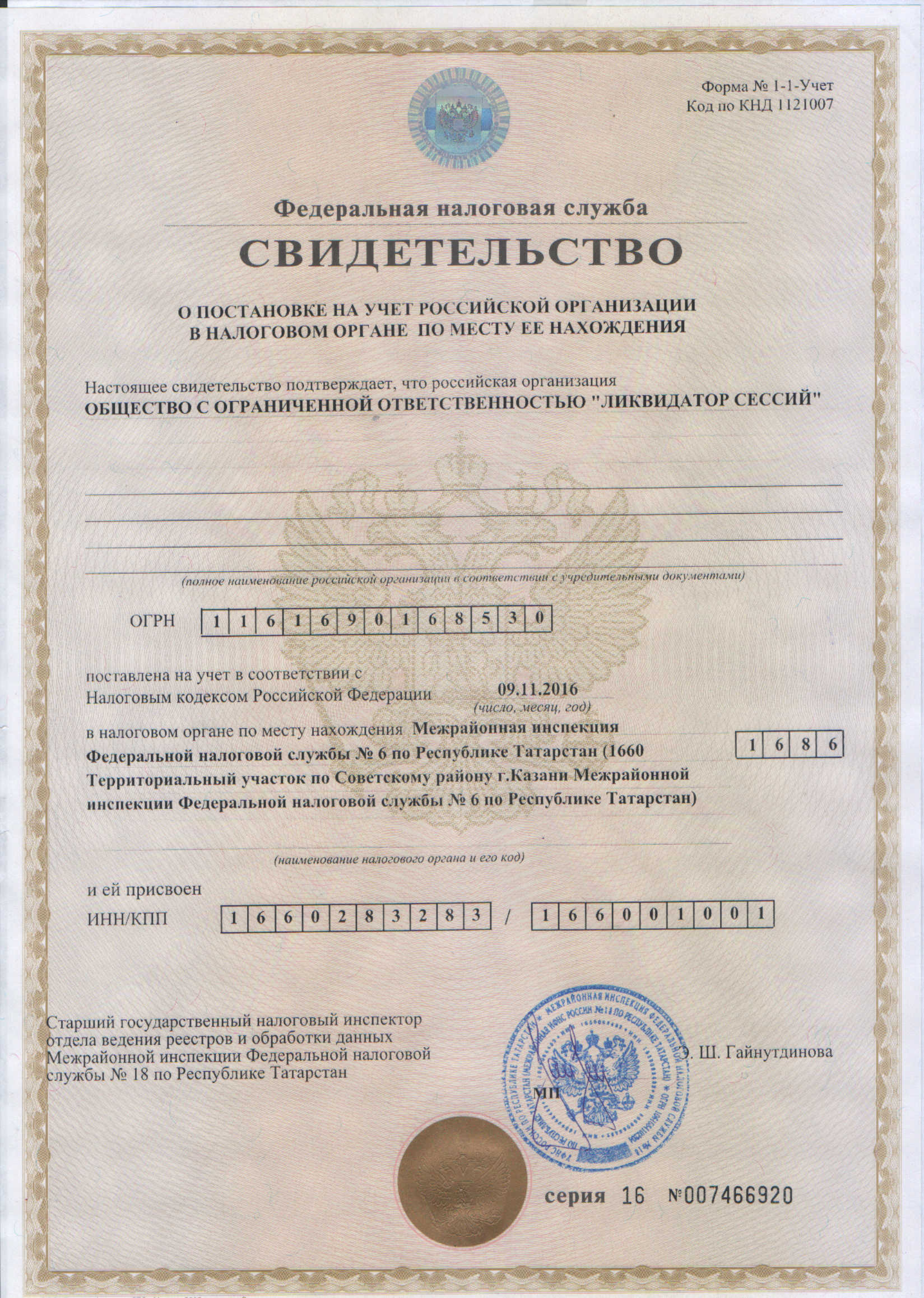 ИНН 1660283283 КПП 166001001